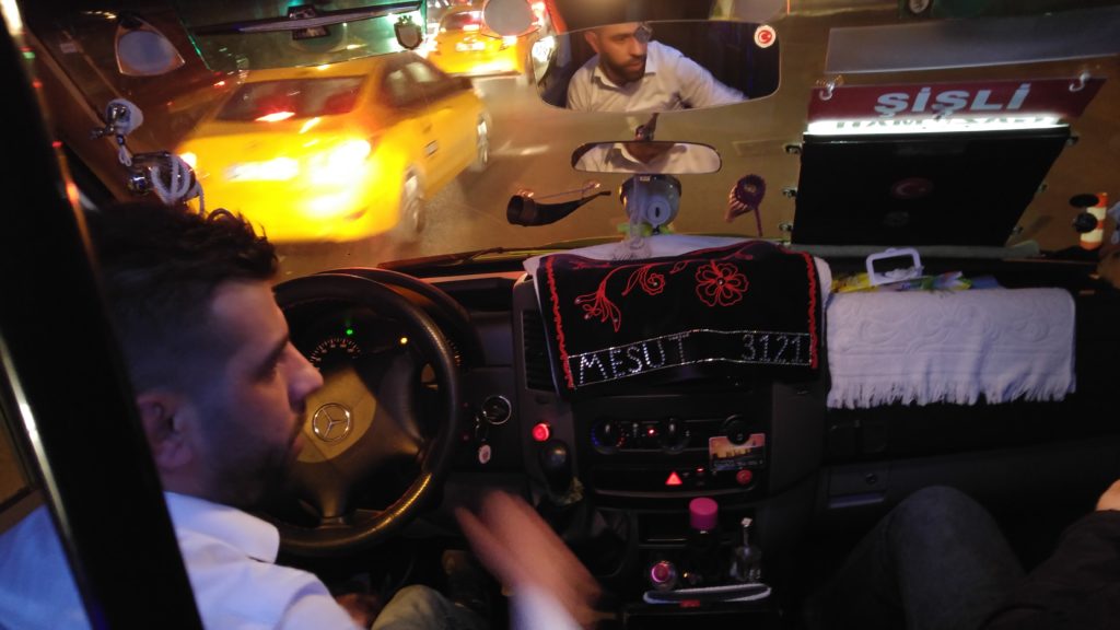 Auf Taksim-Platz tummelten sich viele Familien zum abendlichen Spaziergang im Licht der untergehenden Sonne. Auch wir machten uns auf den Heimweg, aber natürlich war die Bushaltestelle aus Wartungsgründen geschlossen. Nun ja, dann gehen wir halt zu Fuß, dachte ich mir — mein Host sah das jedoch anders. Er hielt einen der unzähligen Mini-Busse an, also zum Bus umgebaute Transporter.